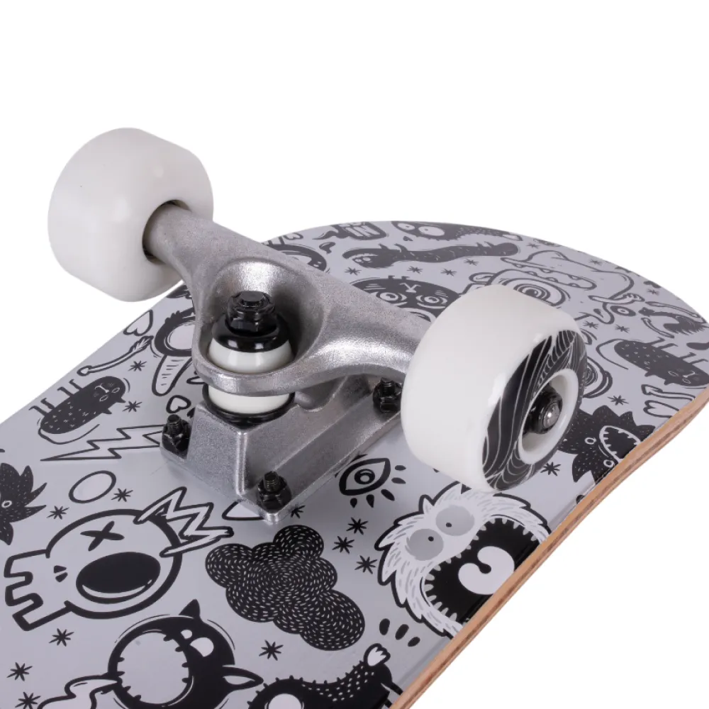 Ощутите свободу катания на скейтборде Aliens 2024 серый от компании Tech Team. Этот брендовый товар создан для тех, кто ценит качество и стиль. Дека выполнена из 7 слоёв русского клёна размером 29.5”х7,5”, обеспечивая хорошую устойчивость на любых скоростях. Колеса PU 54x36 mm с жёсткостью 90А и подшипниками ABEC 9 гарантируют плавное и надёжное катание. Тип деки с двойным концевым загибом (Double Kick) добавляет универсальности для выполнения различных трюков. Необычный дизайн деки в серых тонах с абстрактными персонажами не оставит вас без внимания. Хотите купить скейтборд? Посетите наши сайты, где вы найдете самые выгодные цены и условия доставку. Наши модели скейтбордов - это то, что вы искали!