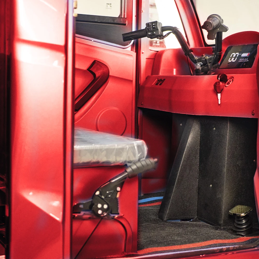 Представляем вашему вниманию Rutrike КАРГО Кабина 1500 в ярком красном цвете. Этот грузовой электротрицикл оснащён закрытым кузовом, что позволяет работать в любых погодных условиях, обеспечивая комфорт и защиту водителя. Просторный грузовой отсек размером 1500×1050×330 мм позволяет перевозить до 600 кг груза. Мощный мотор 1000 Ватт обеспечивает пробег до 40 км на одном заряде, а максимальная скорость достигает 25 км/ч. Мотоциклетный руль обеспечивает удобное управление, а задний барабанный тормоз гарантирует надежную остановку. Идеальный выбор для эффективной доставки в городе.
