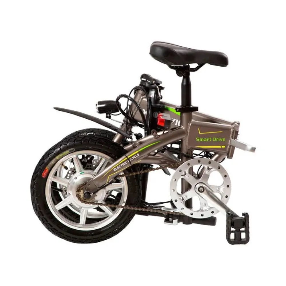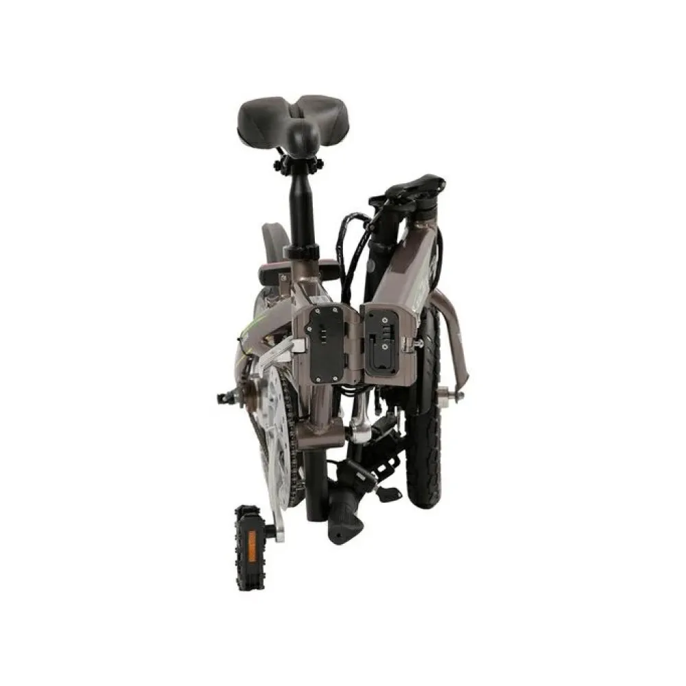 Техника привлекает пользователей необычным строением рамы. Алюминиевая конструкция низкая и складная. Делает технику более эргономичной и практичной. Возможности электродвижка (мощность 250 Вт) позволяет разогнать тс до 25 км и преодолеть дистанцию до 50 км. С такими характеристиками можно смело отправляться на ежедневные прогулки и вылазки с друзьями. Для увеличения пробега производитель рекомендует пользоваться смешанными режимами управления.