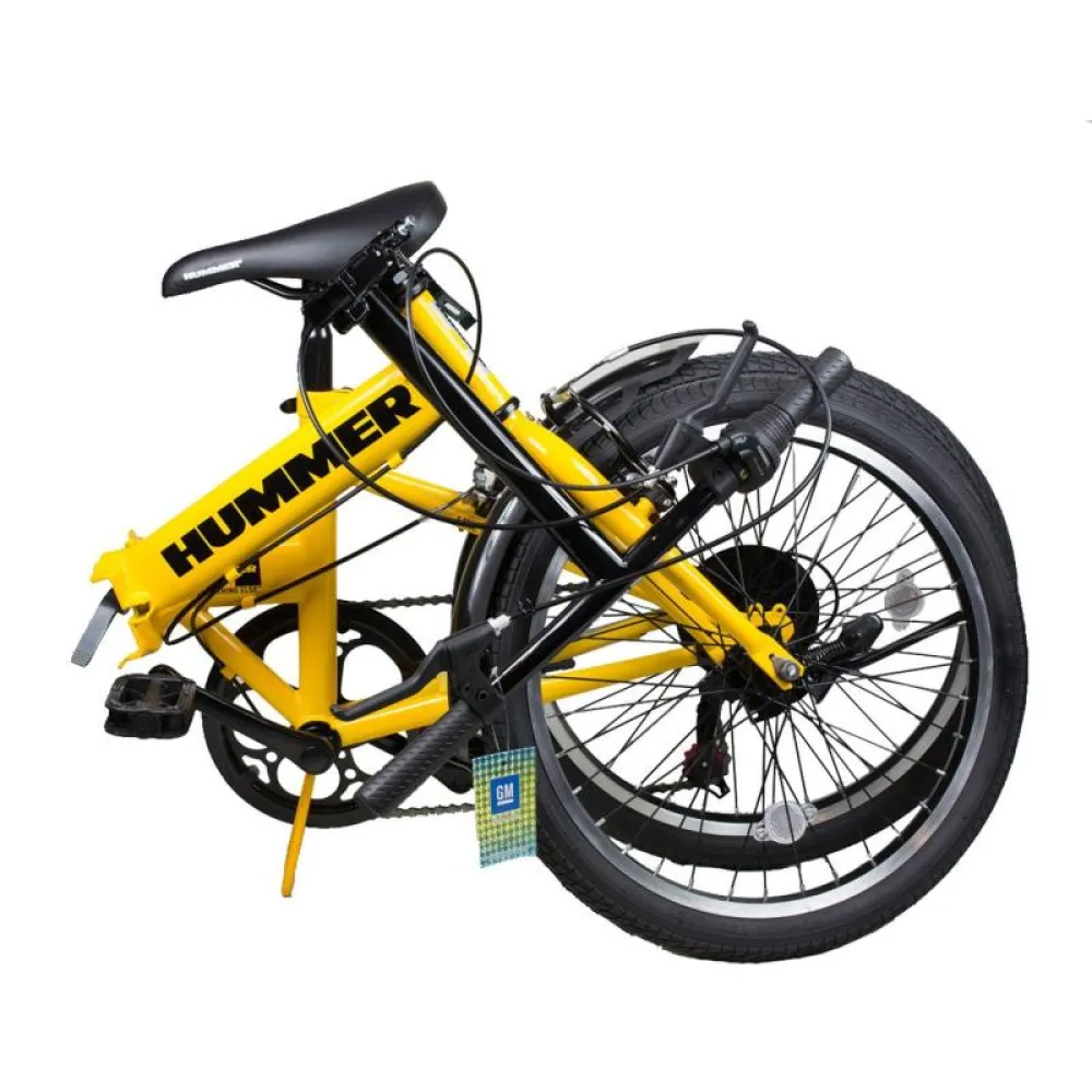 У электровелосипеда HUMMER есть передняя амортизация, повышающая комфортность передвижения. Рама из алюминия складывается, уменьшая габариты вело гибрида вдвое, положить его в багажник автомобиля или убрать на хранение не составит труда.